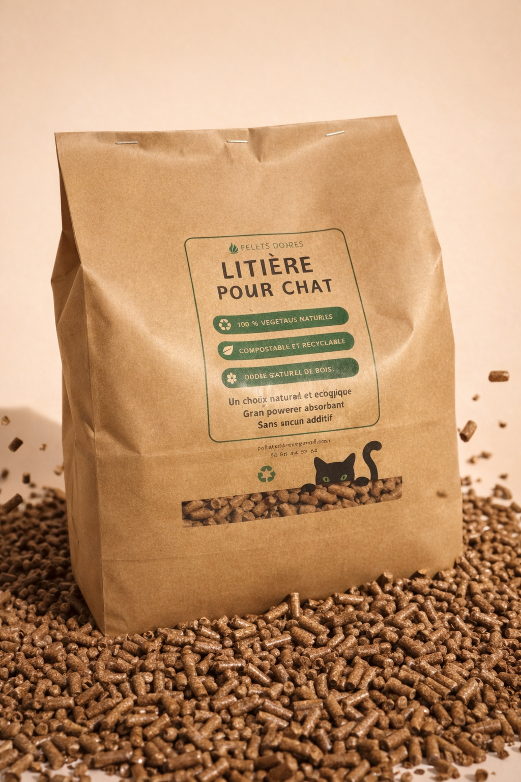 Pourtant, la majorité des litières sur le marché sont importées, fabriquées à base de silice ou d’argile, et peuvent libérer des poussières nocives pour les voies respiratoires de nos compagnons.