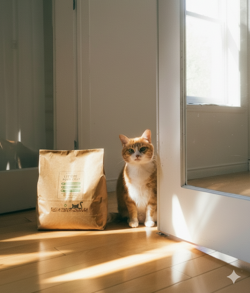 Une litière végétale naturelle, saine pour votre chat et douce pour la planète.